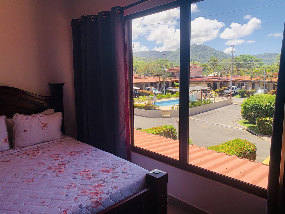 Enjoy a beautiful garden view and partial pool view from the window.