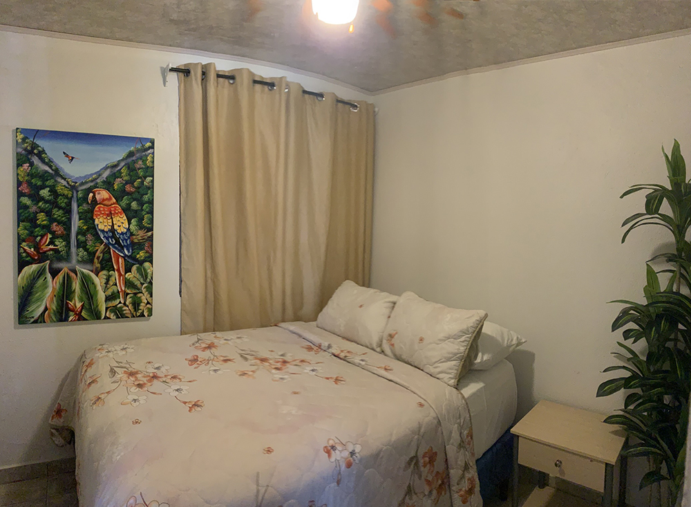 Small bedroom with queen bed.