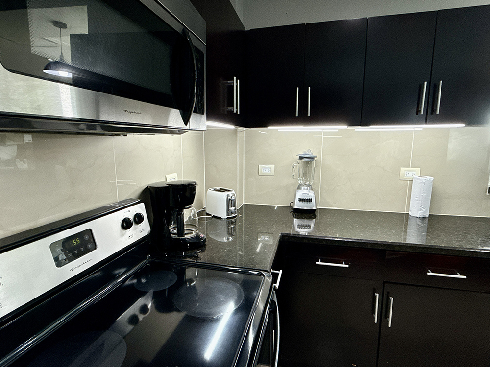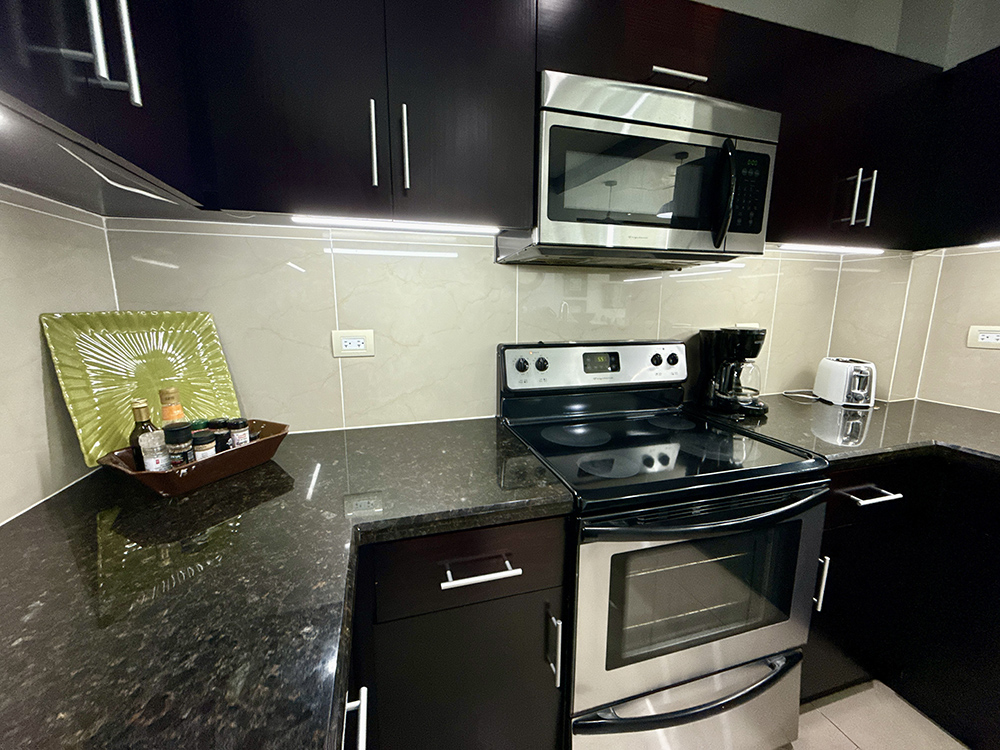 The condo has an inventory, it will be checked before and after each stay to ensure the best possible experience. It also includes basic toiletries. Depending on the length of your stay, you may need additional toiletries, such as toilet paper, bags or hand soap. There are several supermarkets conveniently located around town where you can shop.